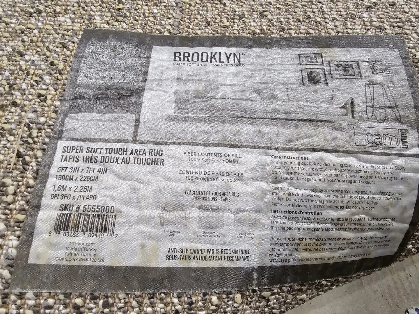 Selling a Brooklyn Super Soft Touch area rug. It's in great condition and measures 5ft 3in x 7ft 4in (160cm x 225cm). The pile is 100% soft freeze olefin. It's a lovely rug that would look great in any room!