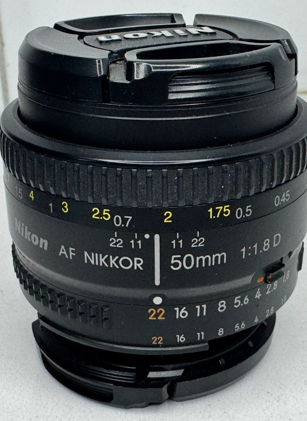 Selling a Nikon AF Nikkor 50mm f/1.8D lens! This lens is known for its sharpness and fast aperture, making it great for portraits and low-light photography. It's in good condition and ready to use with your Nikon camera.