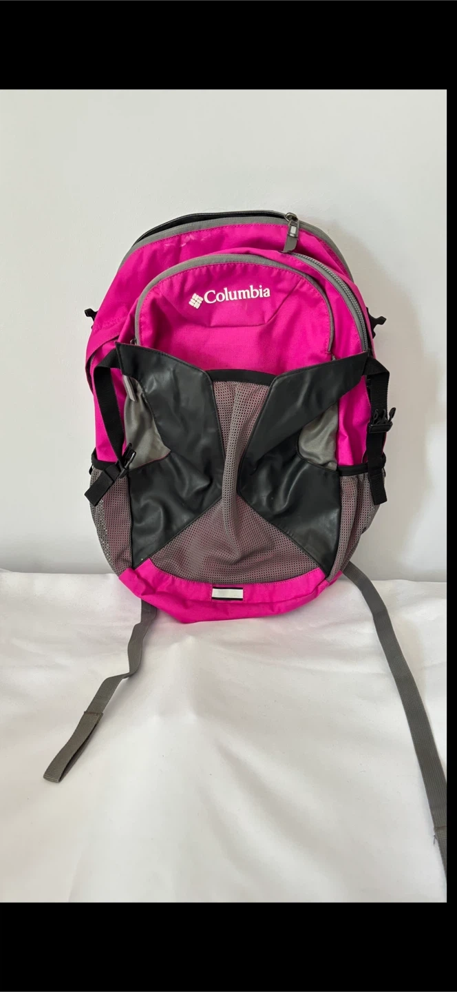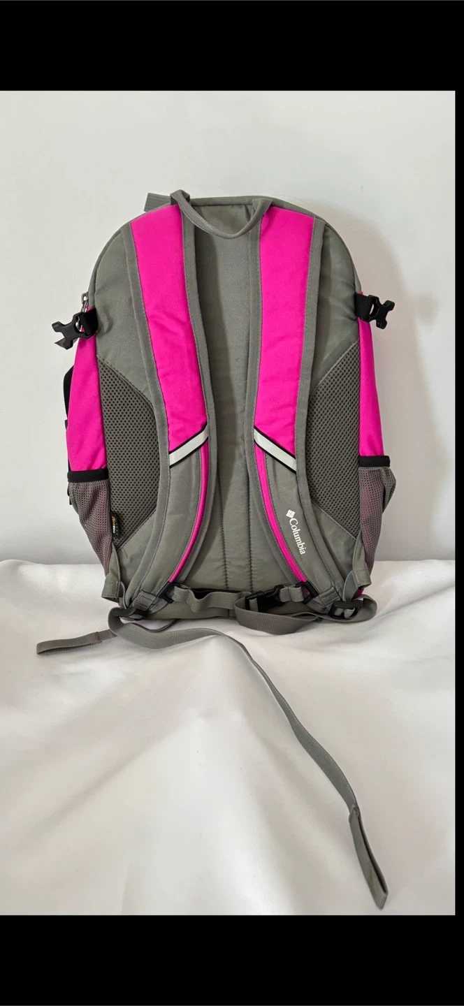 Columbia backpack in great condition! It's a vibrant pink and grey colour. Perfect for school, hiking, or travel. Lots of compartments to keep your things organized