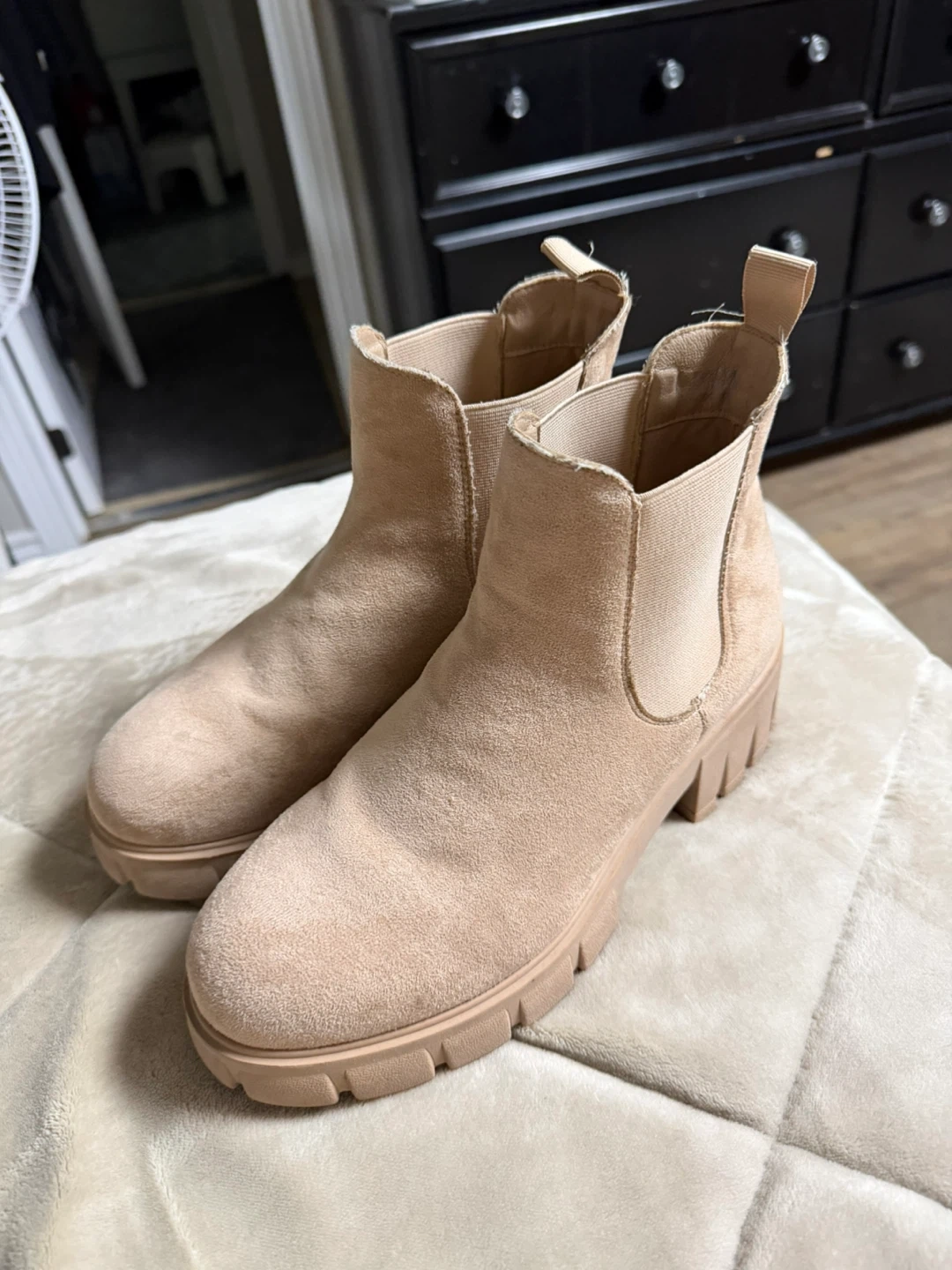 Selling a pair of Cushionaire boots in a lovely beige colour! They're a size 9 and have a nice, sturdy sole. Perfect for adding a bit of style to your everyday look!