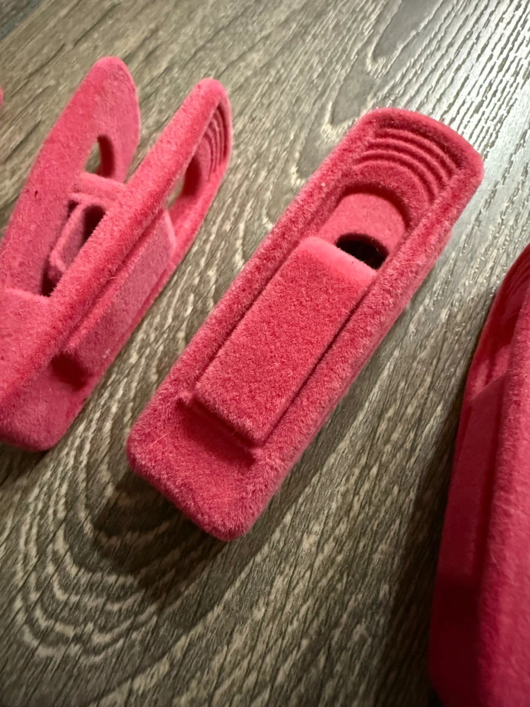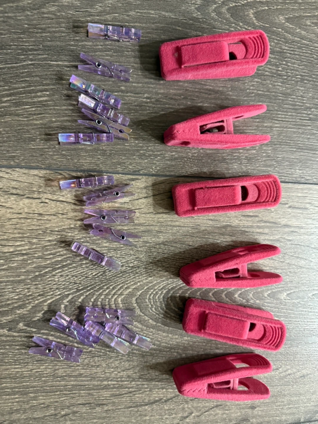 108Selling a bunch of clothes pins in purple and pink colours! They're in great shape and ready to help you hang your clothes to dry