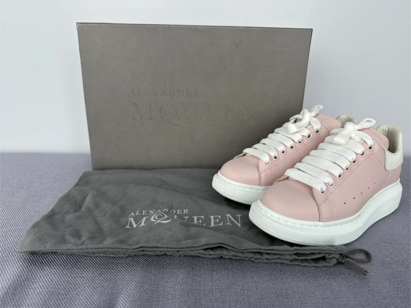Selling a pair of Alexander McQueen sneakers in a lovely pink leather! These stylish sneakers are in great shape and ready for a new home. They feature a classic lace-up design and the iconic McQueen platform sole. Perfect for adding a touch of luxury to your everyday look! This comes with the original box and dust bag.