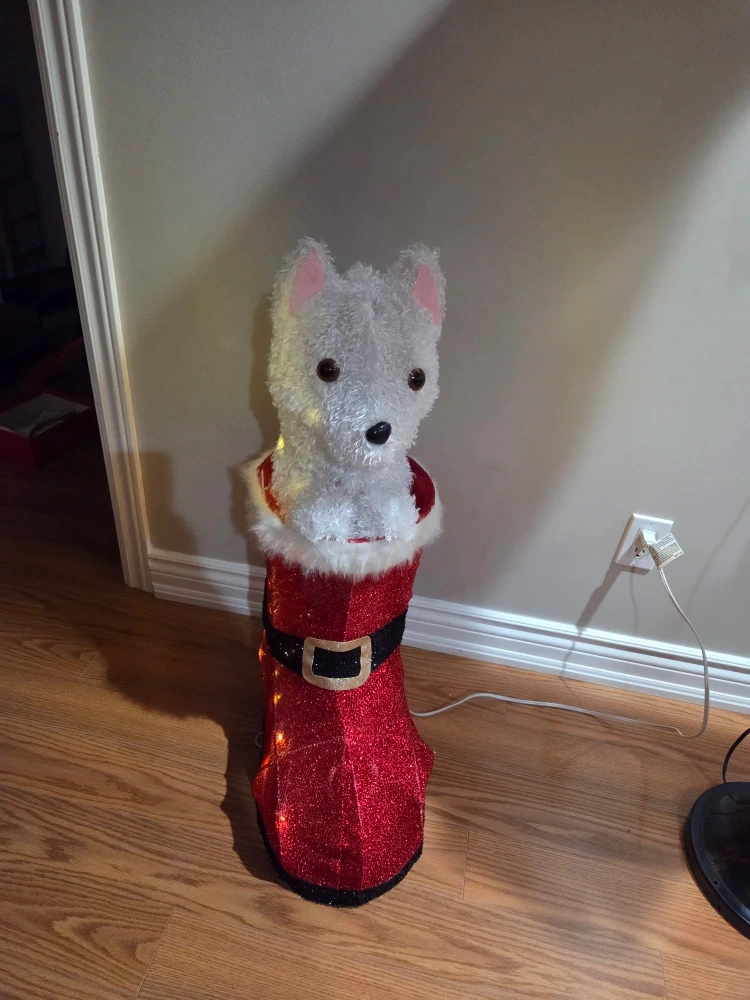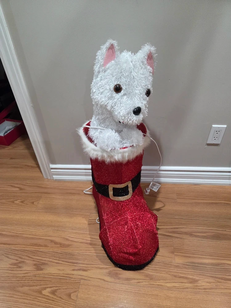 Buy & SellDog in Santa Boot Christmas DecorationDog in Santa Boot Christmas Decoration$60This is a cute Christmas decoration of a dog in a Santa boot. It lights up!ConditionNewWHERE TO MEET3350 dufferin stView MapSELLERangelRural Vaughan181 review0 chats·0 favorites·3 views