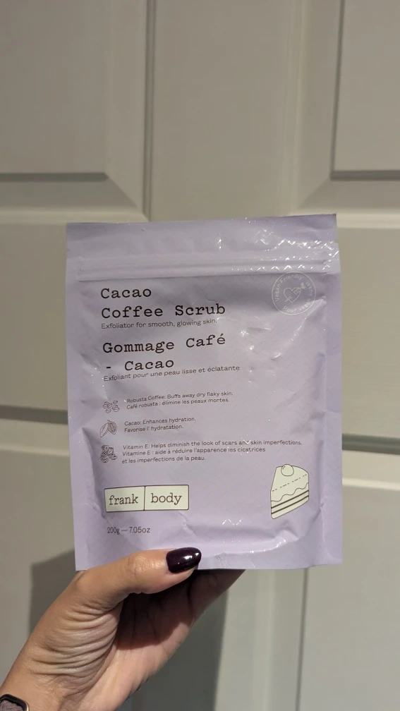 I'm selling a Frank Body Cacao Coffee Scrub! It's an exfoliator for smooth, glowing skin. The scrub contains robusta coffee to buff away dry, flaky skin, and cacao to enhance hydration. It also has vitamin E to help diminish the look of scars and skin imperfections.