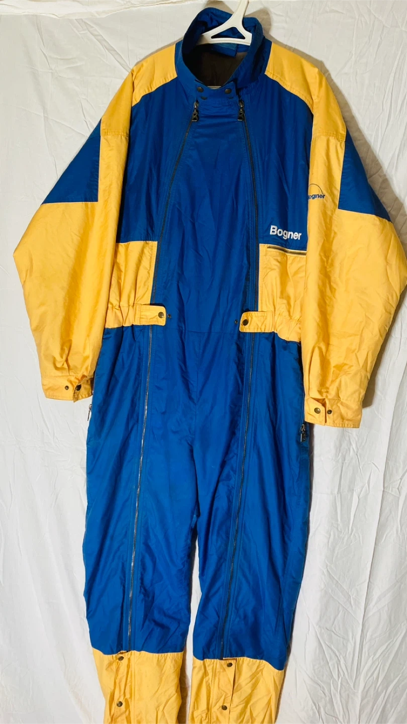Selling a Bogner ski suit in blue and yellow. It's in great condition and ready for the slopes! Perfect for staying warm and stylish while skiing or snowboarding. The suit features a comfortable fit and durable construction to withstand the elements. It has a few pockets for storing essentials. A great find for any winter sports enthusiast!
