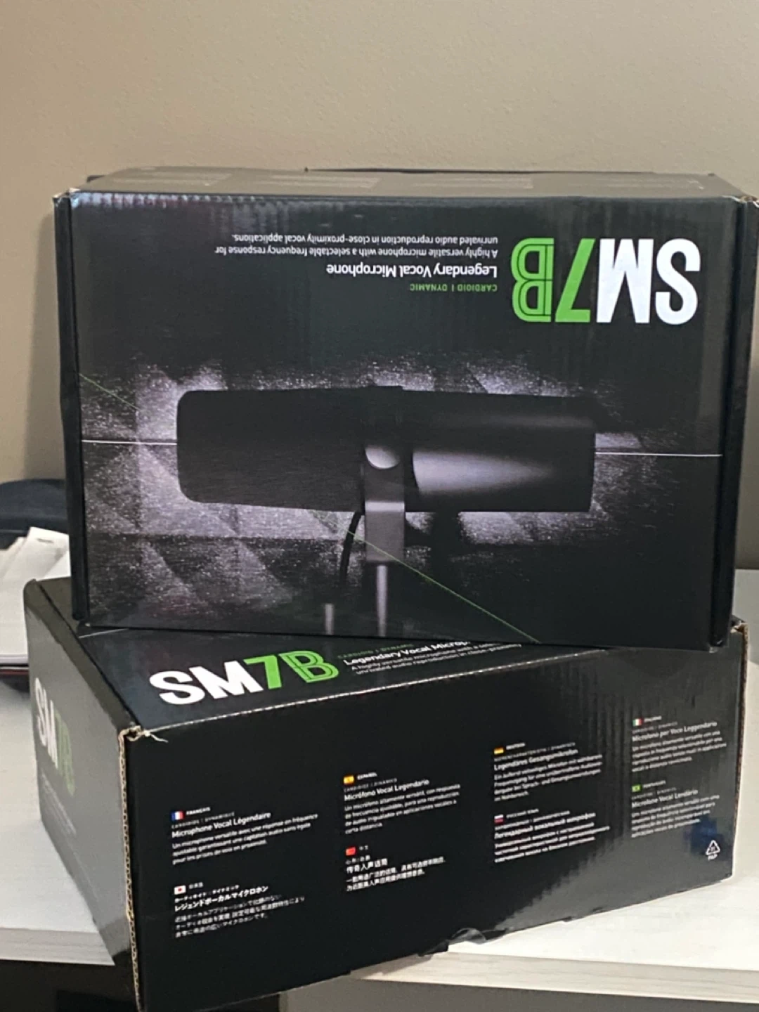 Selling a SM7B Cardioid Dynamic Microphone! It's in new condition and comes with the original box. This legendary vocal microphone is perfect for studio recording, podcasting, and broadcasting. Get that smooth, warm sound you've been looking for!