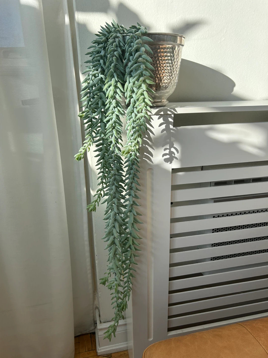 **Sadly she took a tumble due to weight of previous 35” clippings. Has been propagated to fill out the pot including a few new cuttings and leaves.