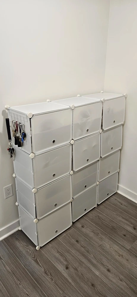 Selling a white modular cube storage organizer. It's in great shape and ready to help you get organized! Perfect for small spaces or adding extra storage to any room