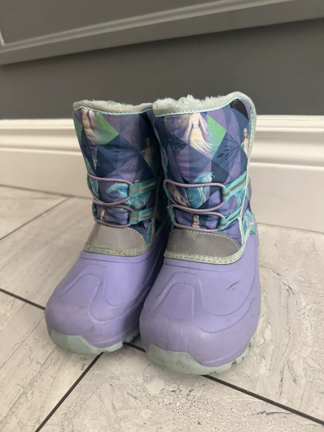 Keep your little one warm this winter with these adorable Frozen-themed winter boots! They're a cute purple colour and in size 13. Perfect for playing in the snow or just keeping their feet cozy on chilly days