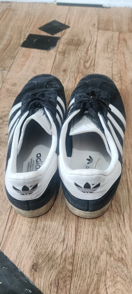 Selling a pair of Adidas Gazelle sneakers in black. They're in good condition with the classic three stripes. Perfect for everyday wear!