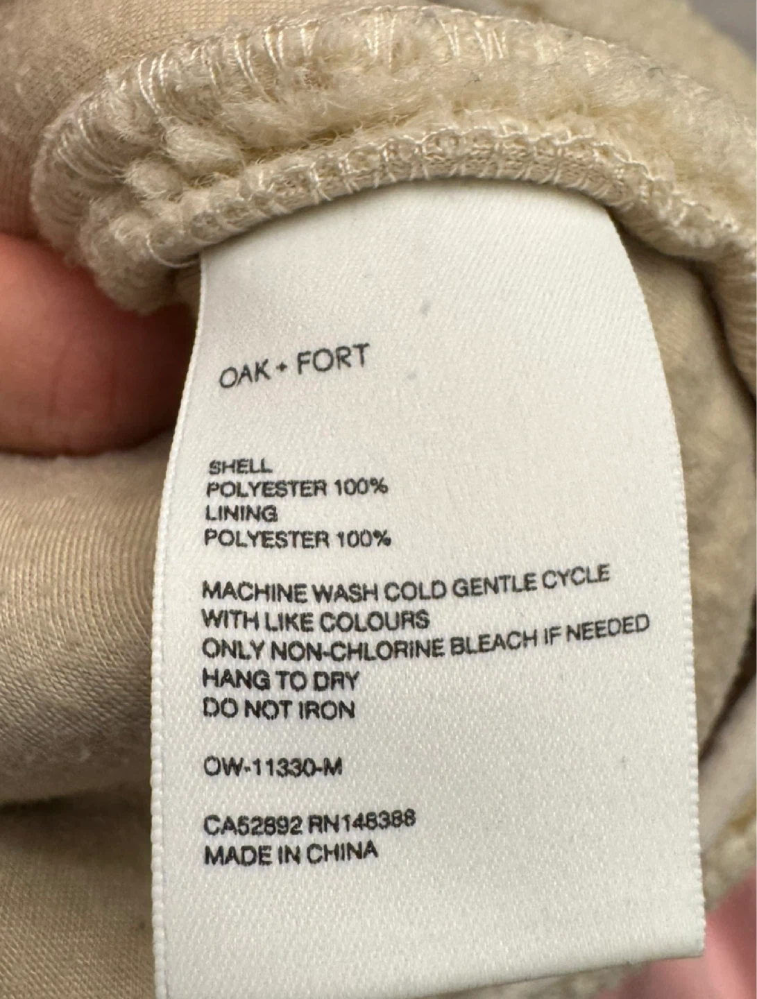 Oak + Fort Beige Fleece Jacket - Size M