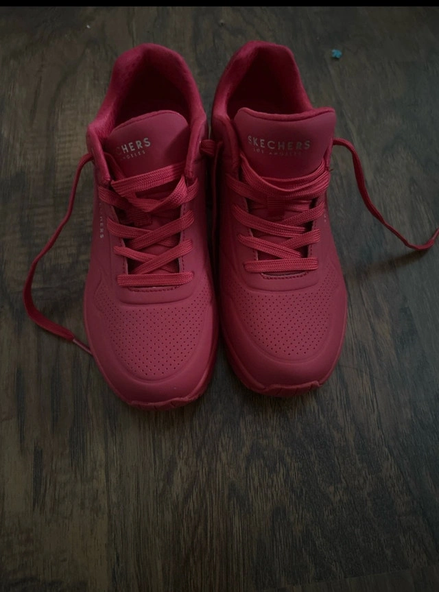 Step out in style with these vibrant red Skechers Uno Stand on Air sneakers, size 6.5! These stylish sneakers feature a bold, monochrome red design that’s sure to turn heads. I'm selling them as they are in good condition, ready for a new adventure. Unisex Looking around Kijiji, similar Skechers sneakers in used condition are typically priced between $30 and $60. I've priced these at $40 due to their good condition but also trying to sell. If the ad is up, they are still available!