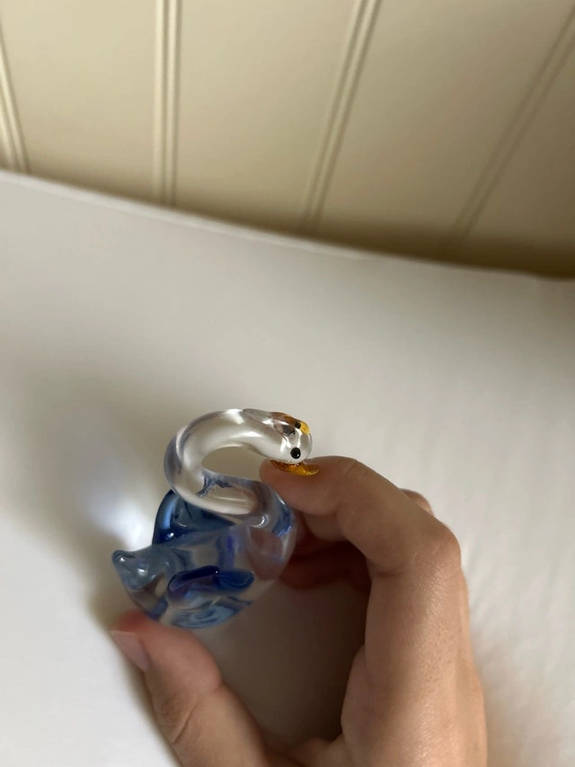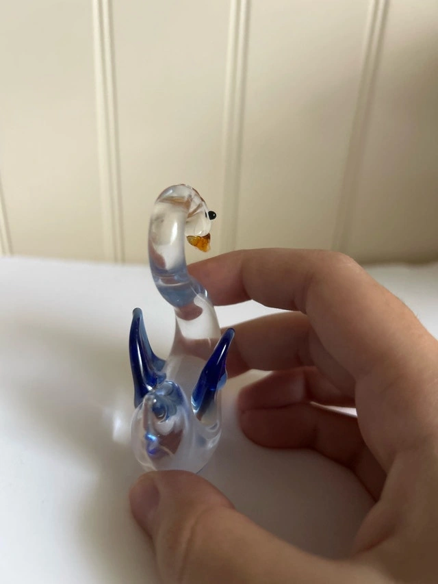 Add a touch of elegance to your collection with this charming glass swan figurine! This used piece is in good condition and features lovely blue accents. It is great as a decorative accent or a delightful addition to any glass collection. This figure was made and bought in Venice Italy. This little swan is waiting to glide into your home! If you're seeing this ad, yes, it's still available!