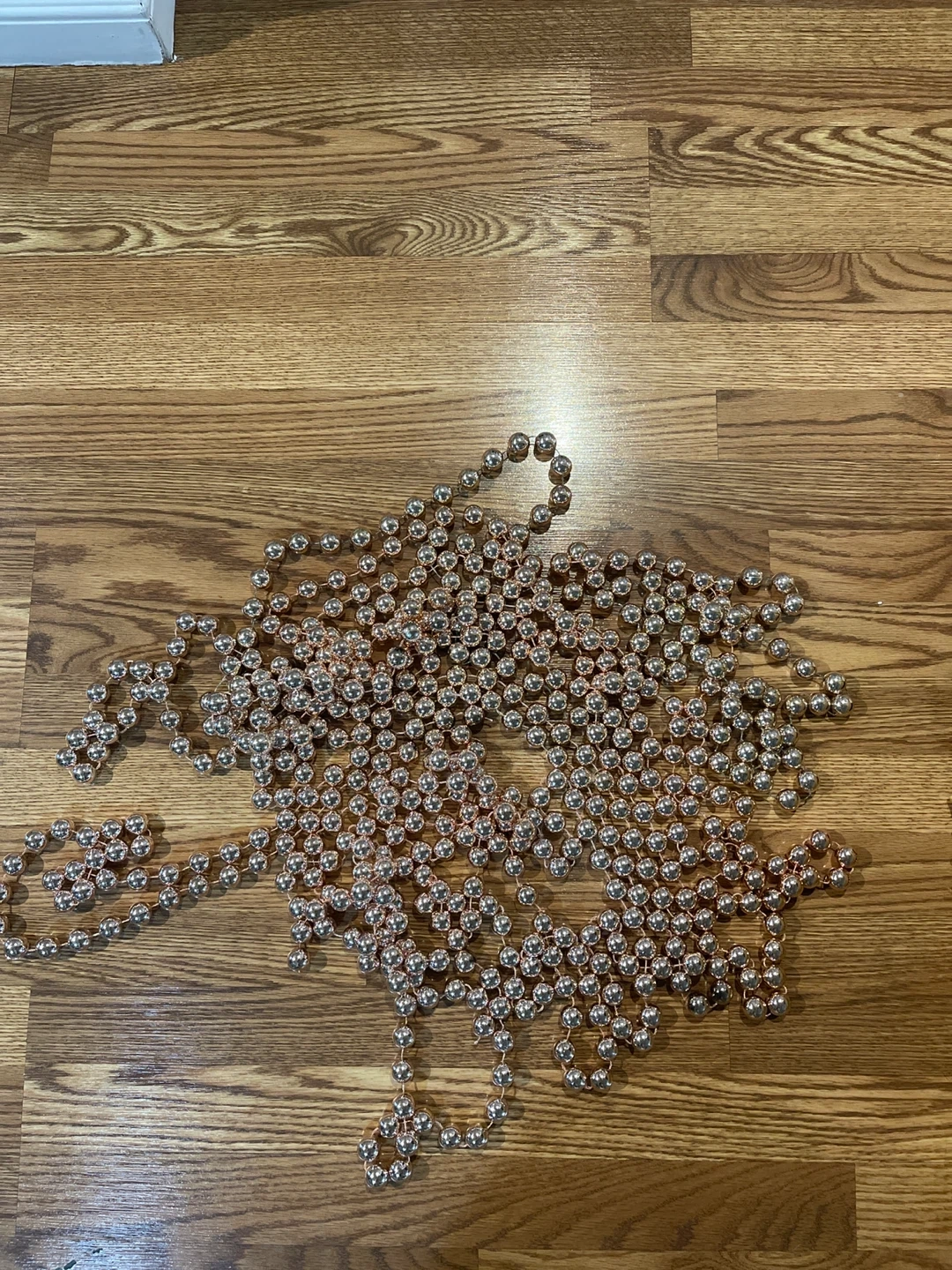 Selling five beaded rose gold garlands, each is six feet in length. Perfect for decorating for the holidays or adding a touch of sparkle to any room!