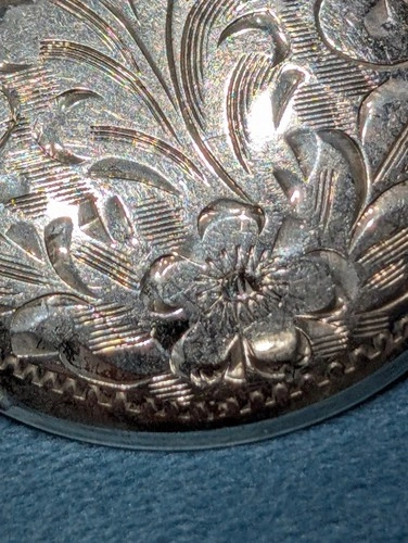 Large Vintage Birks Sterling Silver Flower Engraved Brooch