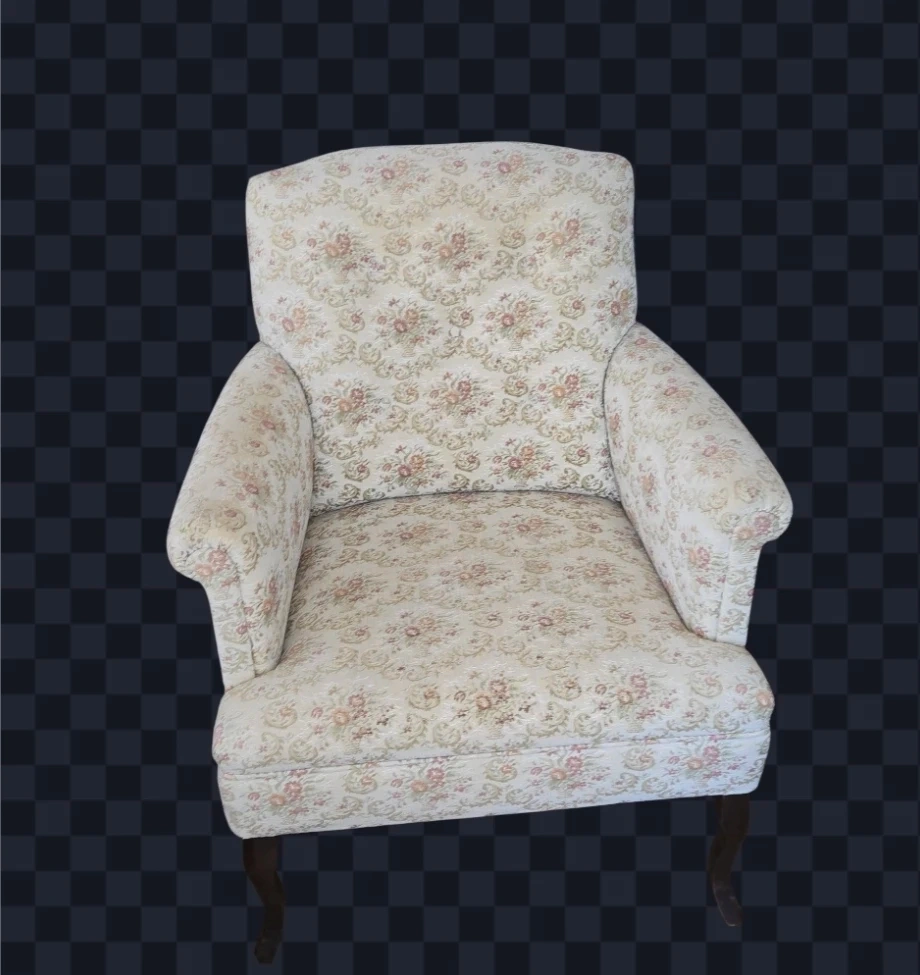 Selling a lovely floral armchair that would look great in any living room or bedroom! It's in good condition and super comfy for relaxing. The floral pattern is really charming and adds a touch of vintage style to any space. Great for reading or just lounging around