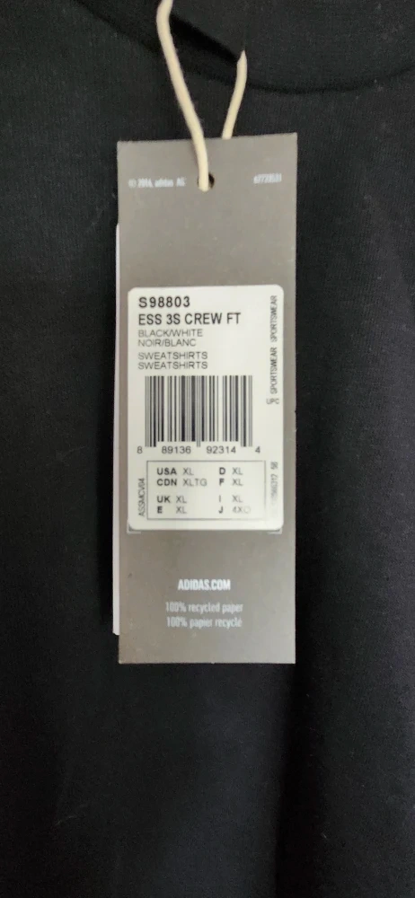 New Adidas Black XL Crewneck Sweatshirt
