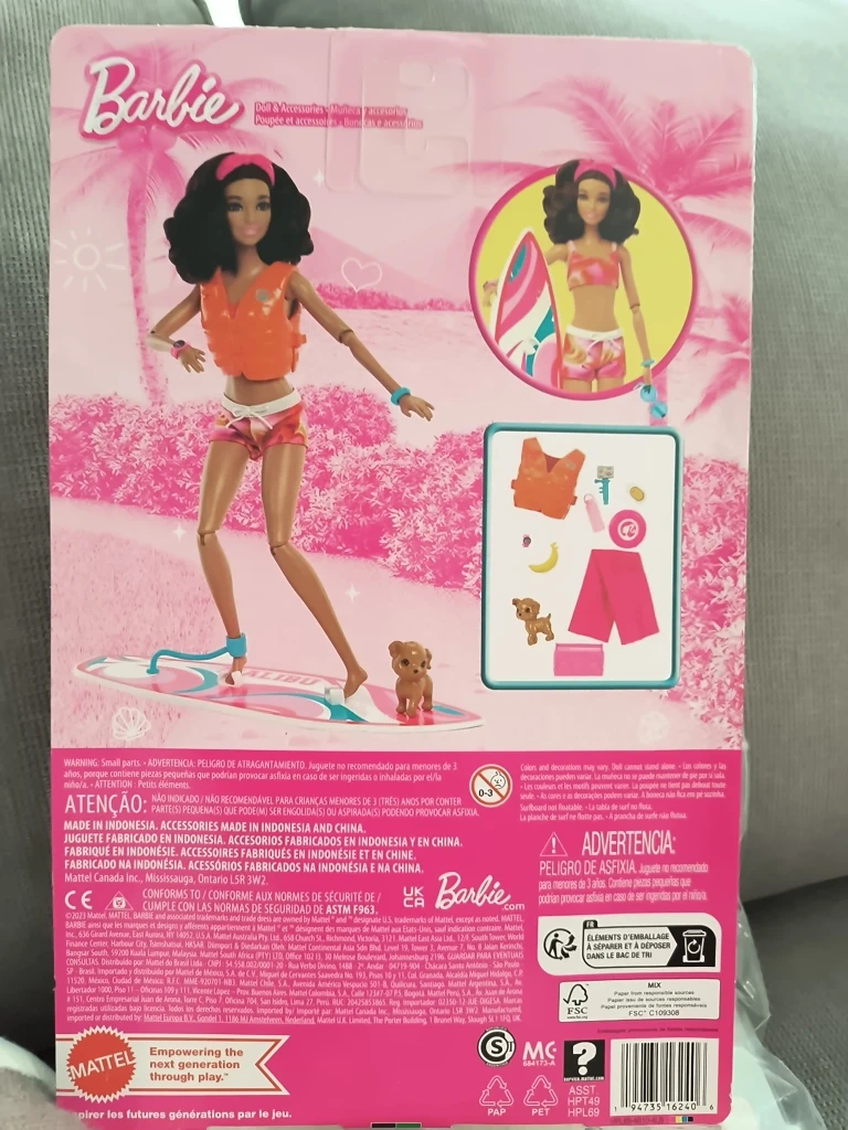 Selling a brand new Barbie Malibu doll still in its original packaging! This set includes a Barbie doll with a surfboard, a cute puppy, and various accessories for a fun day at the beach. Perfect for kids aged 3+