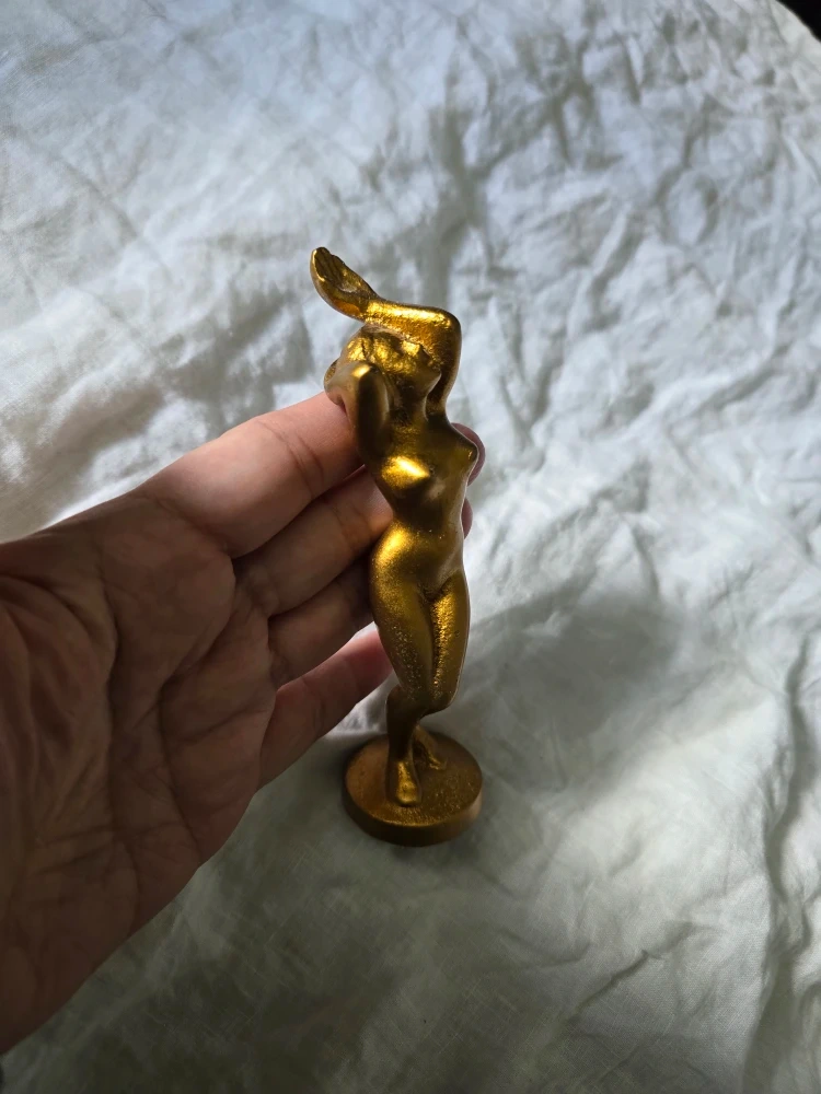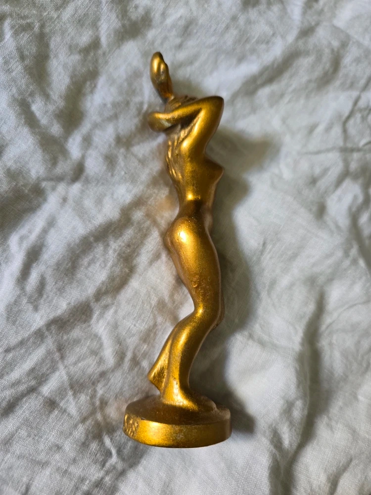 Small gold-finished figurine. Female form. Unique design. Great for collectors.