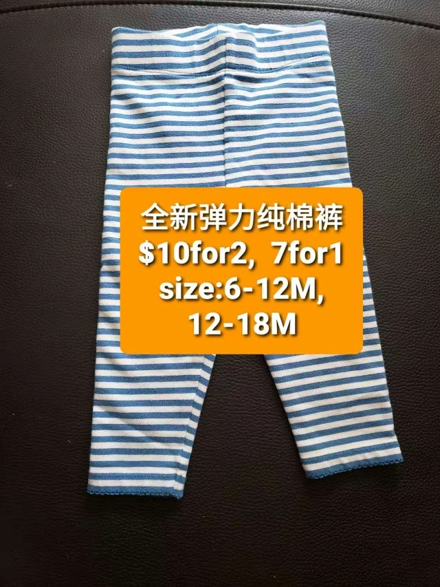 These baby pants are brand new and feature a cute blue and white striped design! They fit babies from 6-12 months and 12-18 months, so they're perfect for growing little ones $10for 2