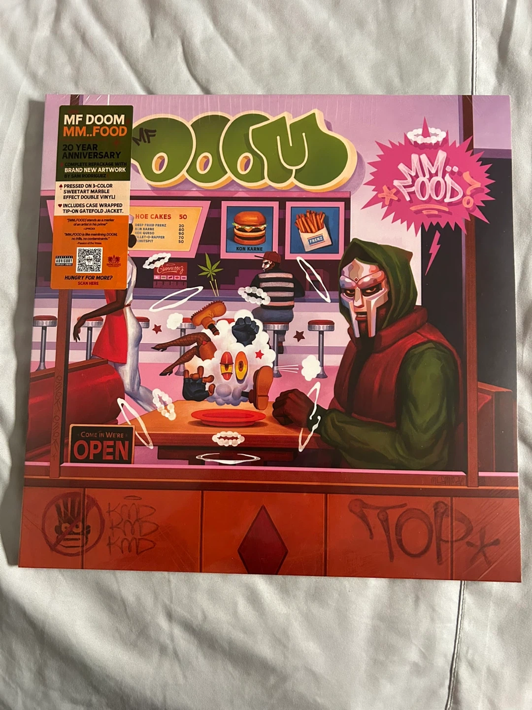 Selling a brand new, still-sealed MF DOOM MM..FOOD 15th Anniversary vinyl record! Features brand new artwork and pressed on 3-color swirl effect double vinyl, housed in a tip-on gatefold jacket. A must-have for any vinyl collector or MF DOOM fan!