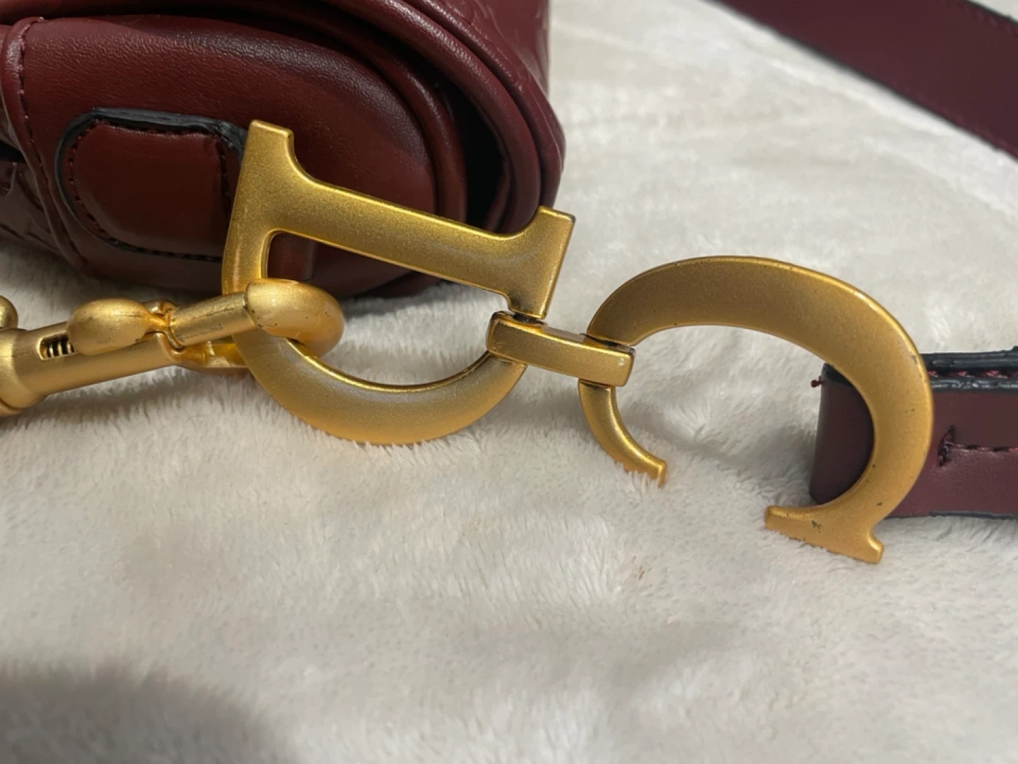 Selling a beautiful Christian Dior Saddle Bag. It's a gorgeous burgundy colour and in great Brand New. The strap says Christian Dior Paris on it. It has a gold-tone 'D' detail on the front. A stylish and iconic piece!