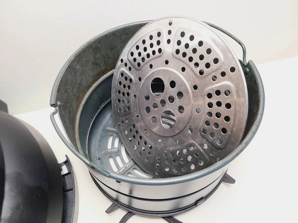 It's in great shape as shown and works perfectly. Basket does show signs of use. Lid is in excellent condition!