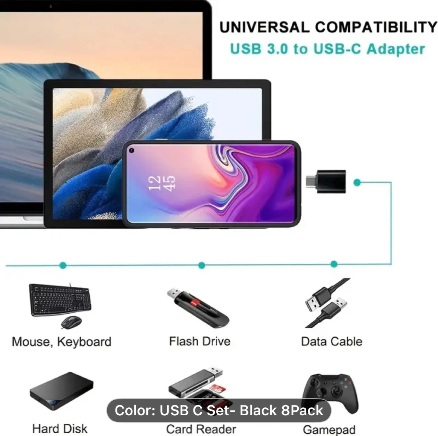 4-Pack USB-C to USB Adapter Set, Type-C Female to A Male Charger Converter, USB-C Male to USB 3.0 Female, Micro USB to USB-C Adapter for Fast Charging and Data Transfer, Type-c Male To Usb 3.0 Female Otg Converter
