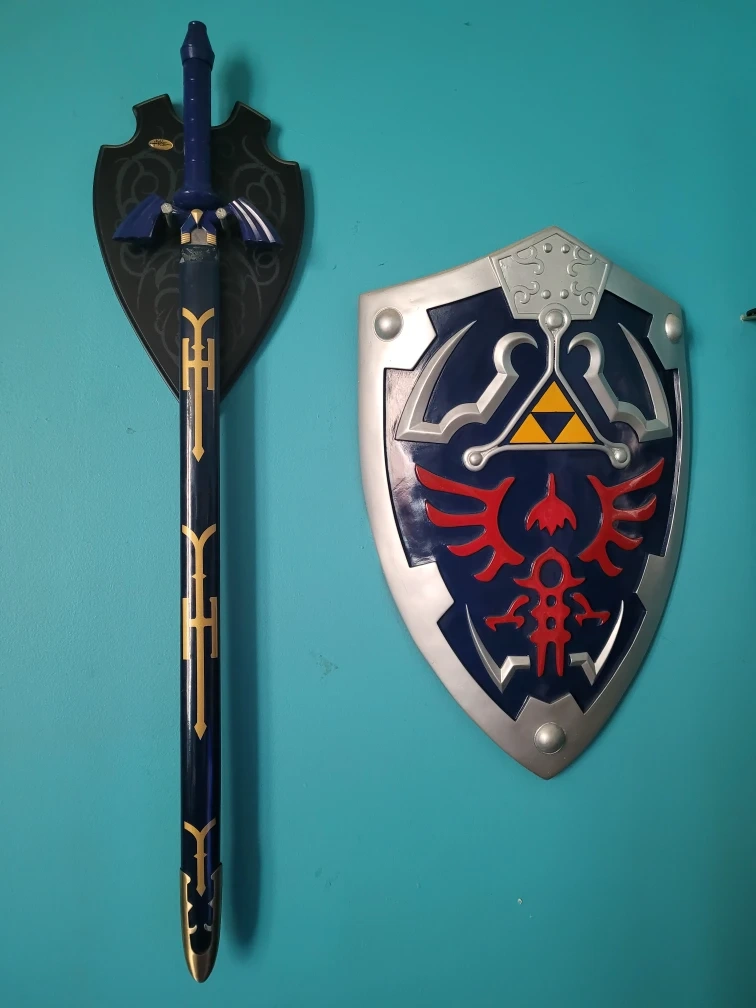 Selling a Legend of Zelda sword and shield set! Perfect for any Zelda fan or collector. The set is in great condition and would look amazing on display