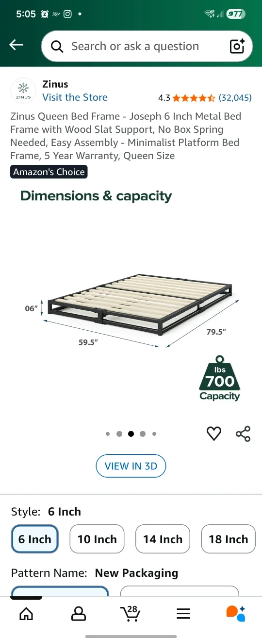 Selling a Zinus Queen Bed Frame - Joseph 6 Inch Metal Bed Frame with Wood Slat Support. No Box Spring Needed. It has a 700 lbs capacity and the dimensions are 59.5" x 79.5" x 6". FOR PICK-UP ONLY