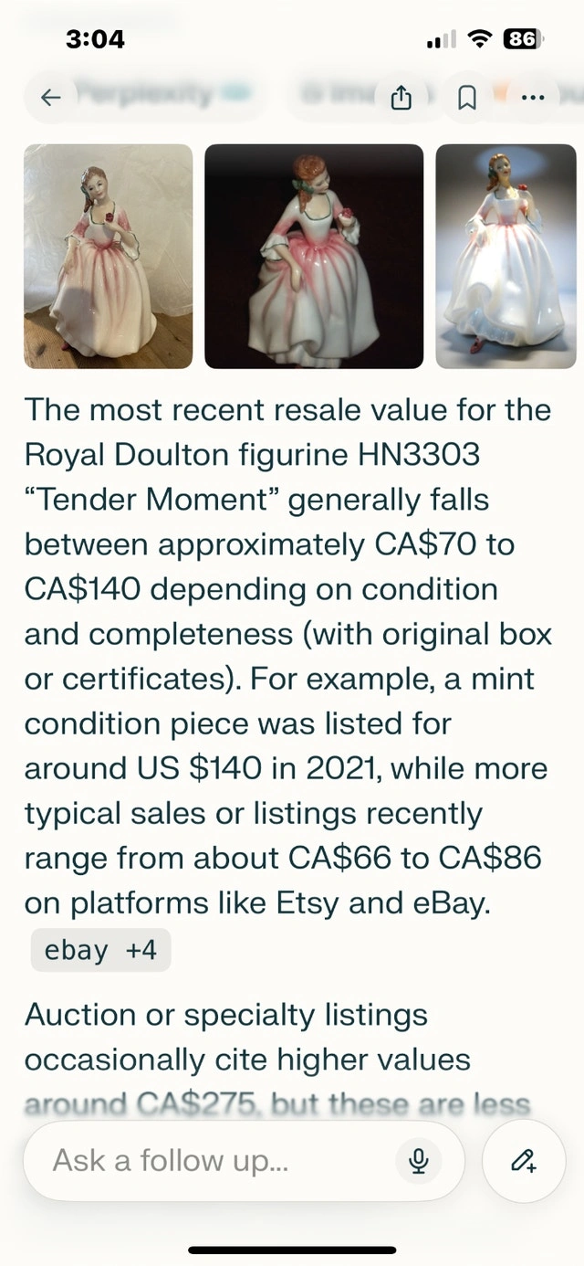 Vintage Royal Doulton Figurine HN3303 Tender Moment designed by Peggy Davis !990-1997 In mint condition. Price is firm. I have 4 figurines on Kijiji you can have them all for 200 Firm