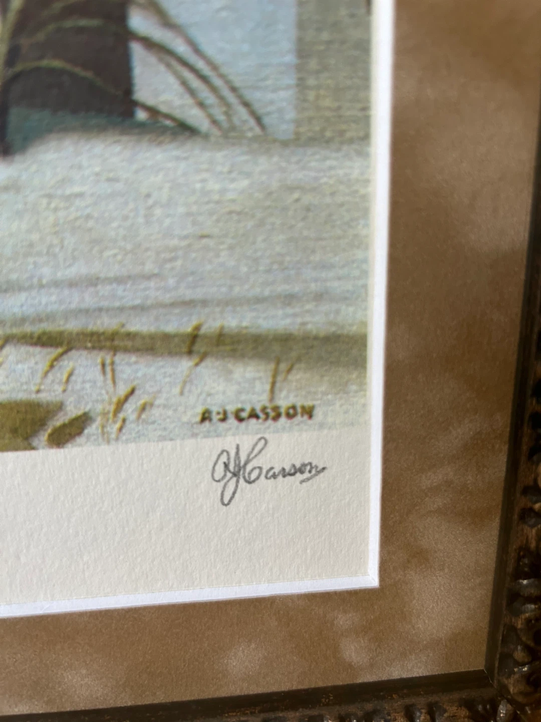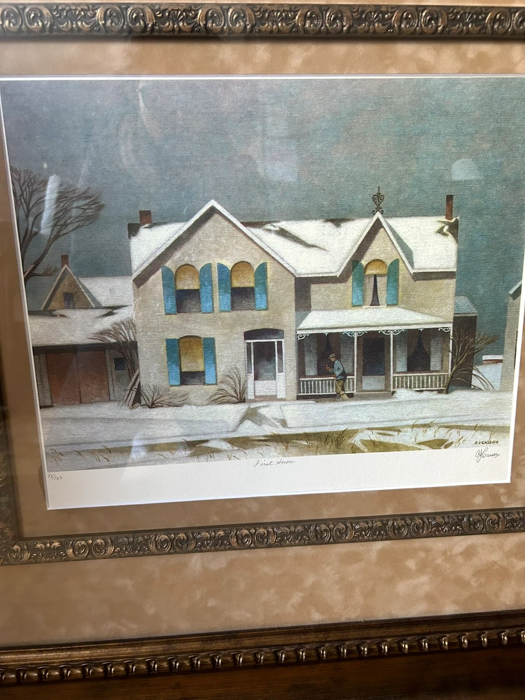Selling a framed print of A.J. Casson's 'First Snow'. Signed by the artist.