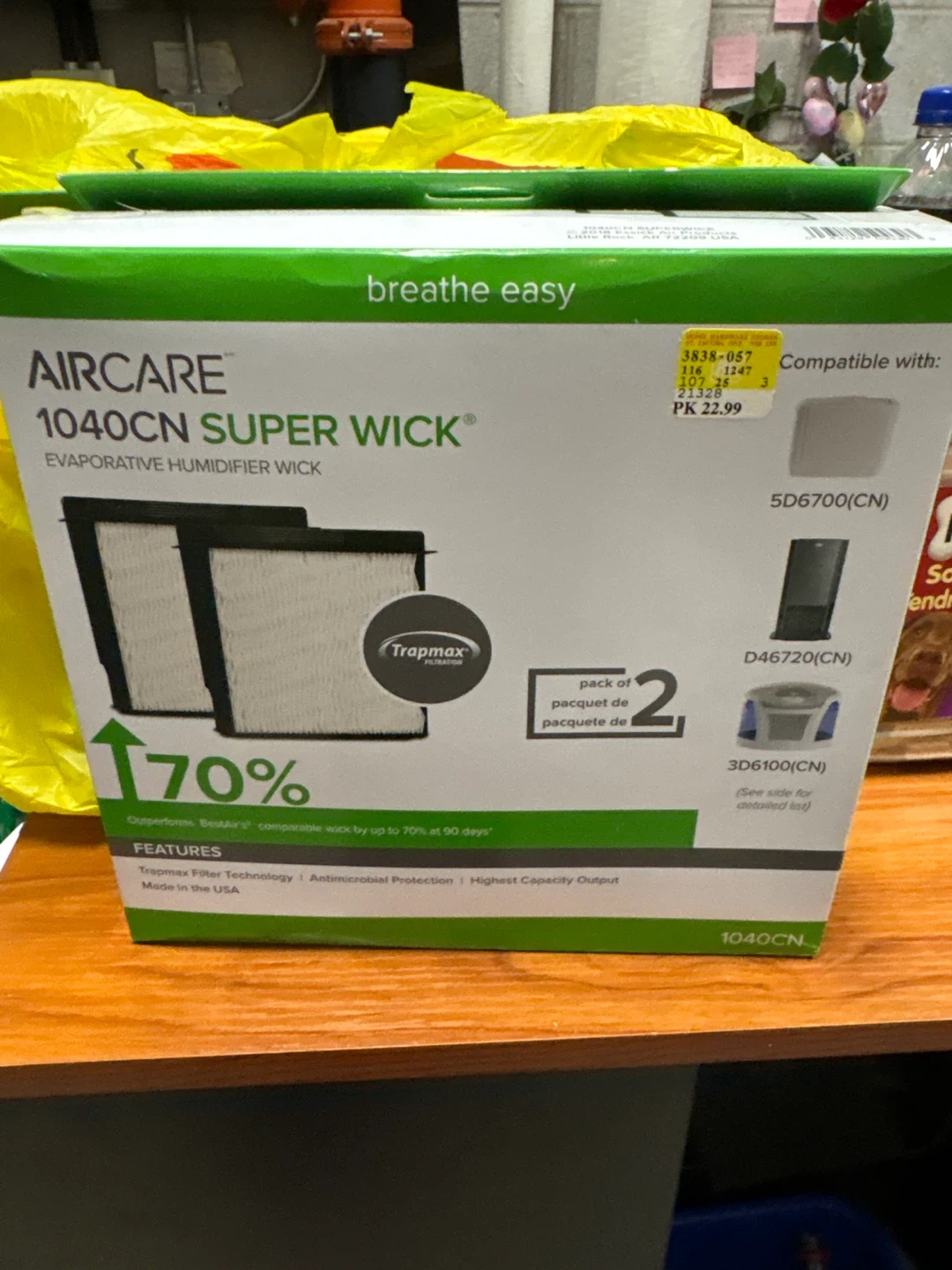 Selling a new Aircare 1040CN Super Wick evaporative humidifier wick. It features Trapmax filter technology and antimicrobial protection for highest capacity output. Compatible with models 5D6700(CN), D46720(CN), and 3D6100(CN). Originally bought for $22.99.