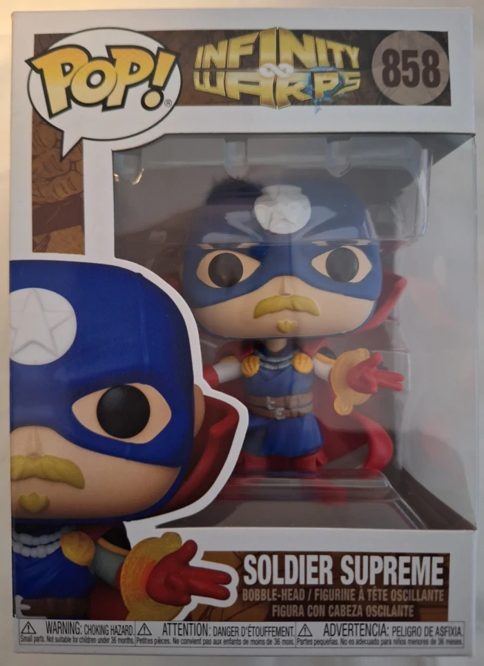Selling a Funko Pop! figure from the Infinity Warps series, featuring Soldier Supreme. It's number #858 in the collection and comes in its original box. A great addition for any collector!