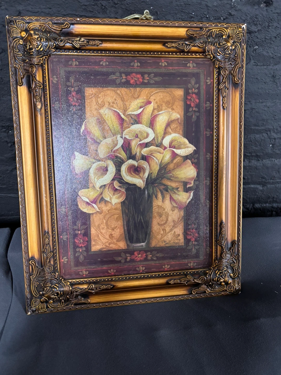 Beautiful framed floral wall art, perfect for adding a touch of elegance to any room! The frame has intricate details, and the floral design is vibrant and eye-catching