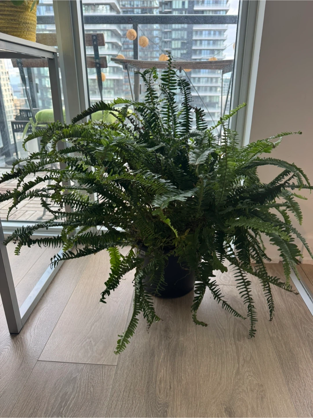 I have a beautiful Boston fern plant for sale! It's lush and green, perfect for adding some life to your home. It measures approximately 27 inches in height.