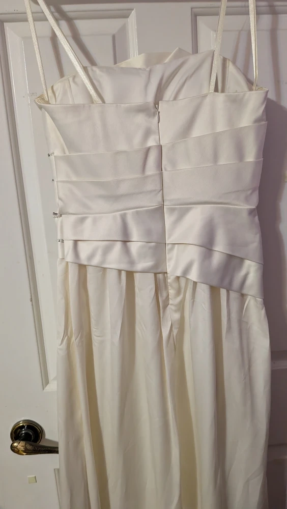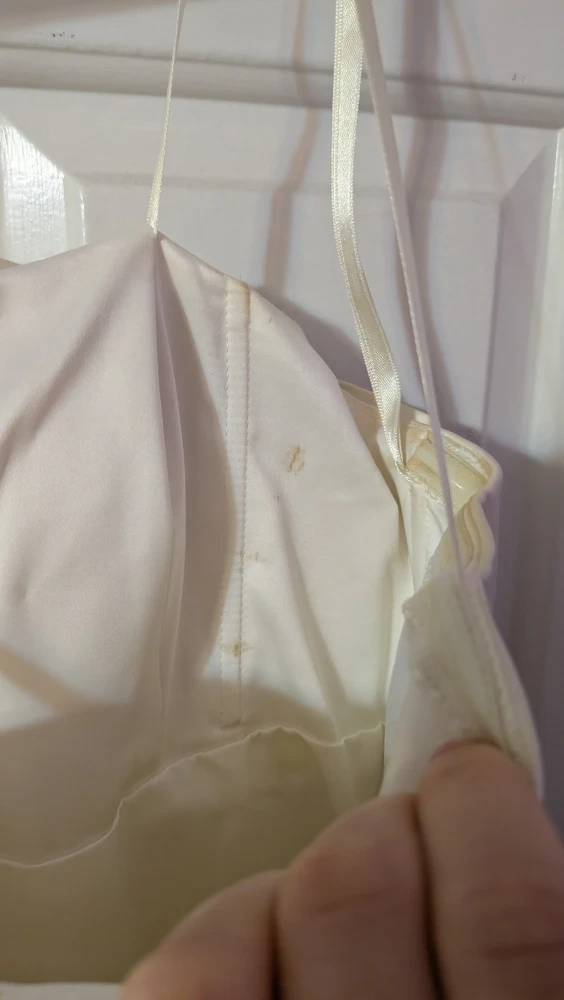 Selling a beautiful Max and Cleo dress in size 6, only worn once. It's a lovely cream colour, can be used for bridal or formal events, and has some beaded detailing. There are some small stains on the inside bust of the dress (pictured)