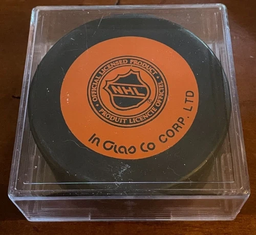 Own a piece of hockey history with this signed Philadelphia Flyers Stanley Cup puck. This authentic InGlasCo puck bears the signature of a DAVE BROWN. The puck is an original, making it a must-have for any NHL memorabilia collector. It was made in Canada and was part of the historic event/tournament held at Civic Arena Pittsburgh. Don't miss your chance to own a piece of Flyers history!