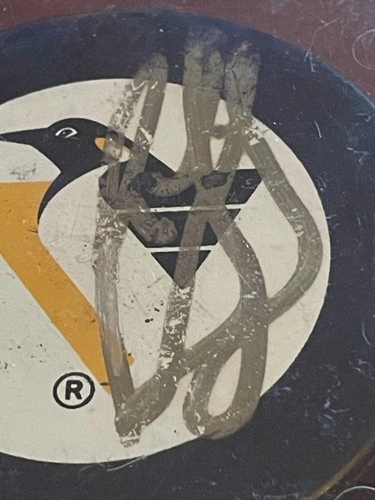 RON FRANCIS AUTOGRAPH PENGUIN INGLASCO OFFICIAL GAME PUCK