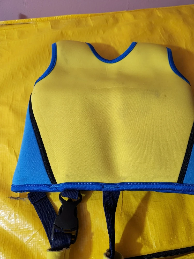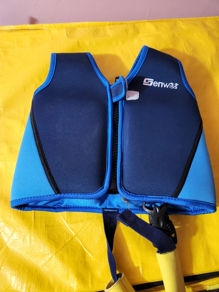 This is a Genwiss kids swim vest in good condition! It's perfect for helping your little one learn to swim. The vest is blue and yellow and has a zipper closure.