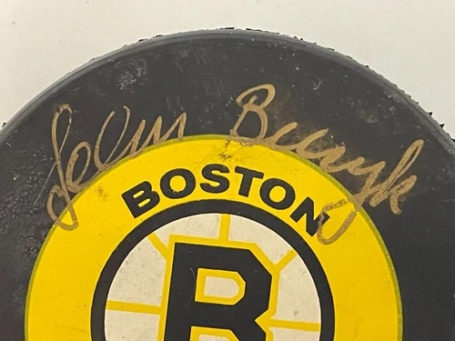 JOHN BUYCK BOSTON BRUINS Game SIGNED vintage GAME PUCK