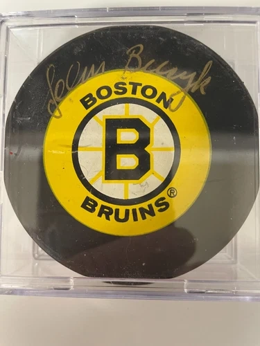 JOHN BUYCK BOSTON BRUINS Game SIGNED vintage GAME PUCK
