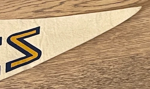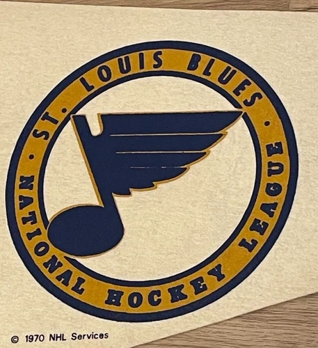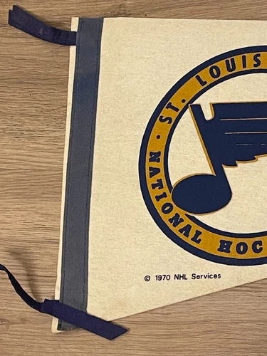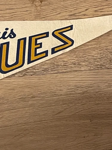 This vintage 1970 ST LOUIS BLUES NHL pennant banner measures 29 inches by 12 inches and features a colorful design. IT FEATURES THE OLD BLUES LOGO. This is a great addition to any collection of sports memorabilia and would make a unique decorative piece for any fan of the team or sport. The pennant is an original item from 1970 and is in excellent condition, as can be seen in the photos provided. The item is made by WinCraft and is a must-have for any fan of hockey or vintage sports memorabilia. OVER 50 YEARS OLD AND STILL LOOKS NEW. Gotta go, make offer