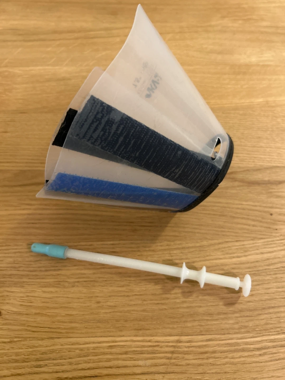 Selling a KVP EZ-Clear E-Collar, size 7.5"-10", along with a handy pilling device. Perfect for helping your furry friend recover comfortably! Will fit a small dog or adult cat