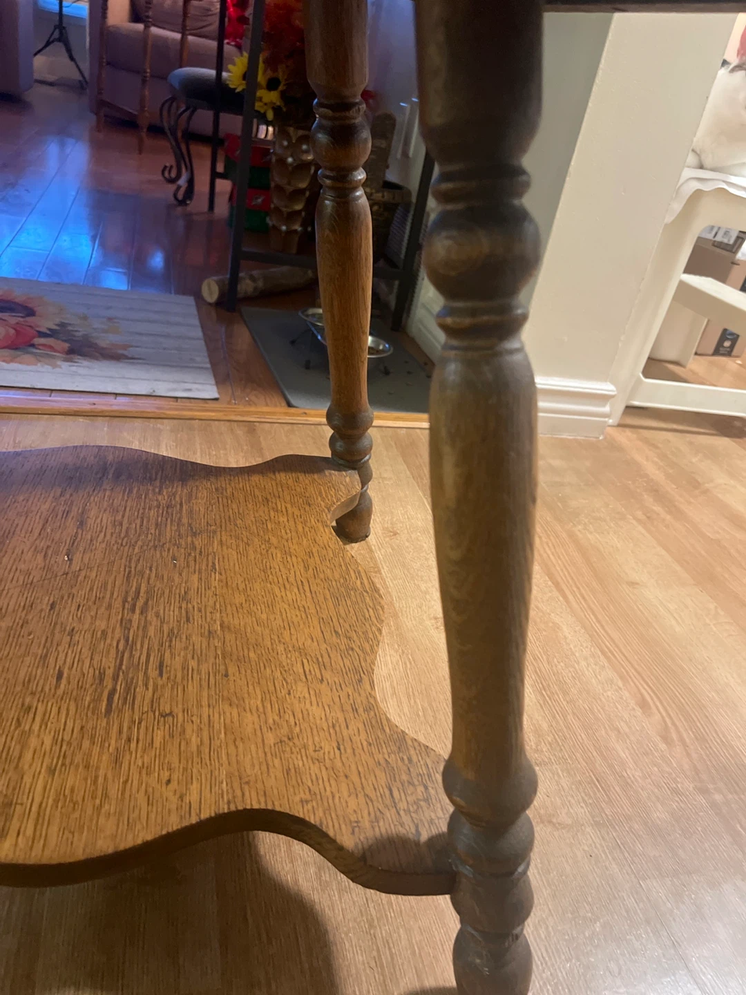 A lovely wooden side table that would fit perfectly in any living room or bedroom. It has a nice, sturdy build and a classic design. The wood has a beautiful grain and the legs are nicely carved. It's in great condition and ready for a new home