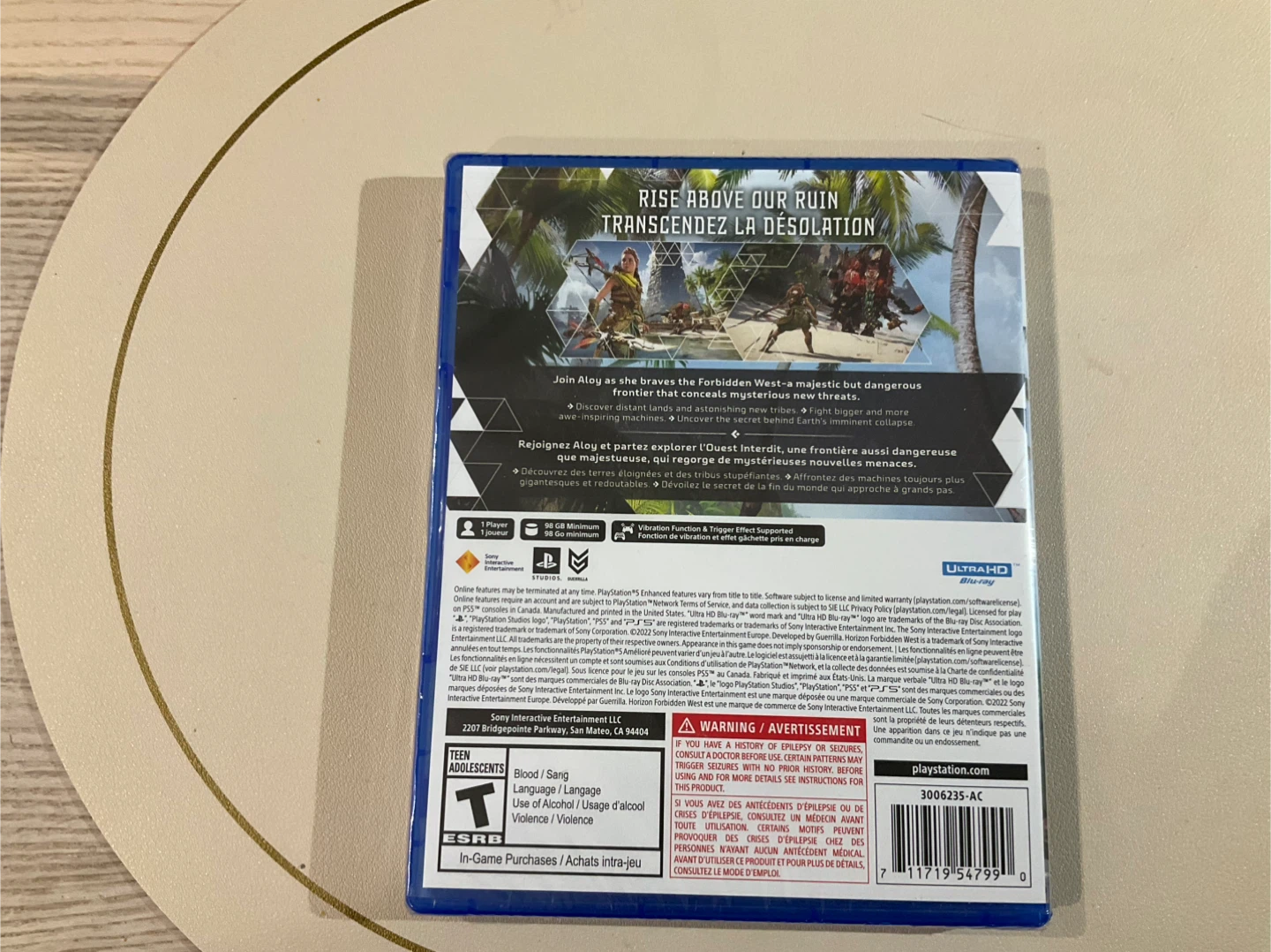 Selling Horizon Forbidden West for the PS5! Join Aloy as she braves the Forbidden West, a majestic but dangerous frontier hiding new threats and epic machines. Discover distant lands and astonishing new tribes as you explore this open-world adventure