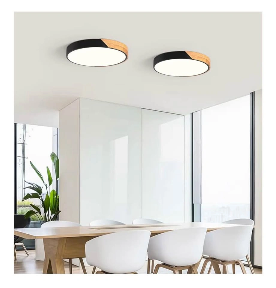 Modern Wood Flush Mount Ceiling Light, Light Fitting Ceiling for Living Room Bedroom Kitchen Lounge Hallway, 15.7Inch,30W (Black)