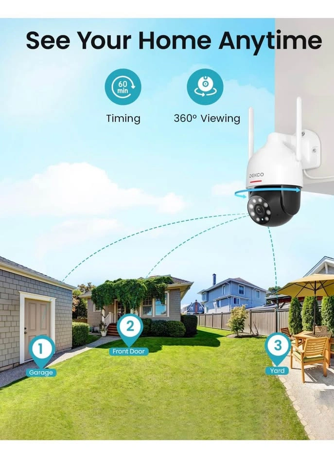 DEKCO 2K Outdoor Security Camera with 360 Degree Pan-Tilt Motion Tracking, Home Camera Surveillance Exterieur, WiFi Camera, Full Color Night Vision Sound-Light Alarm, 2-Way Audio, Waterproof - 2 pack. Let me know if you're interested!