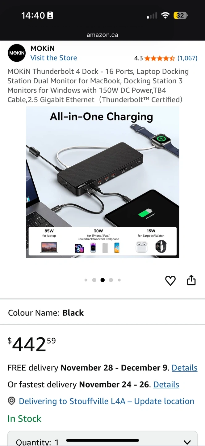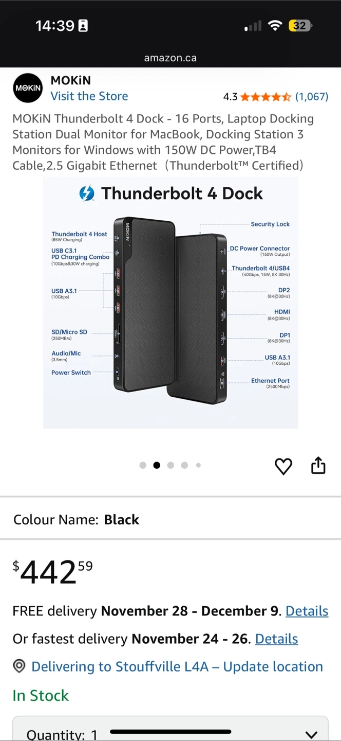 Selling a Mokin Thunderbolt 4 Dock in excellent condition! It comes with the box and charger. This docking station has 16 ports, perfect for connecting multiple monitors and devices to your Macbook or Windows laptop. It supports up to 150W DC Power and has Thunderbolt 4, 2.5 Gigabit Ethernet, and TB4 Cable. Originally bought for $442.59 +hst.