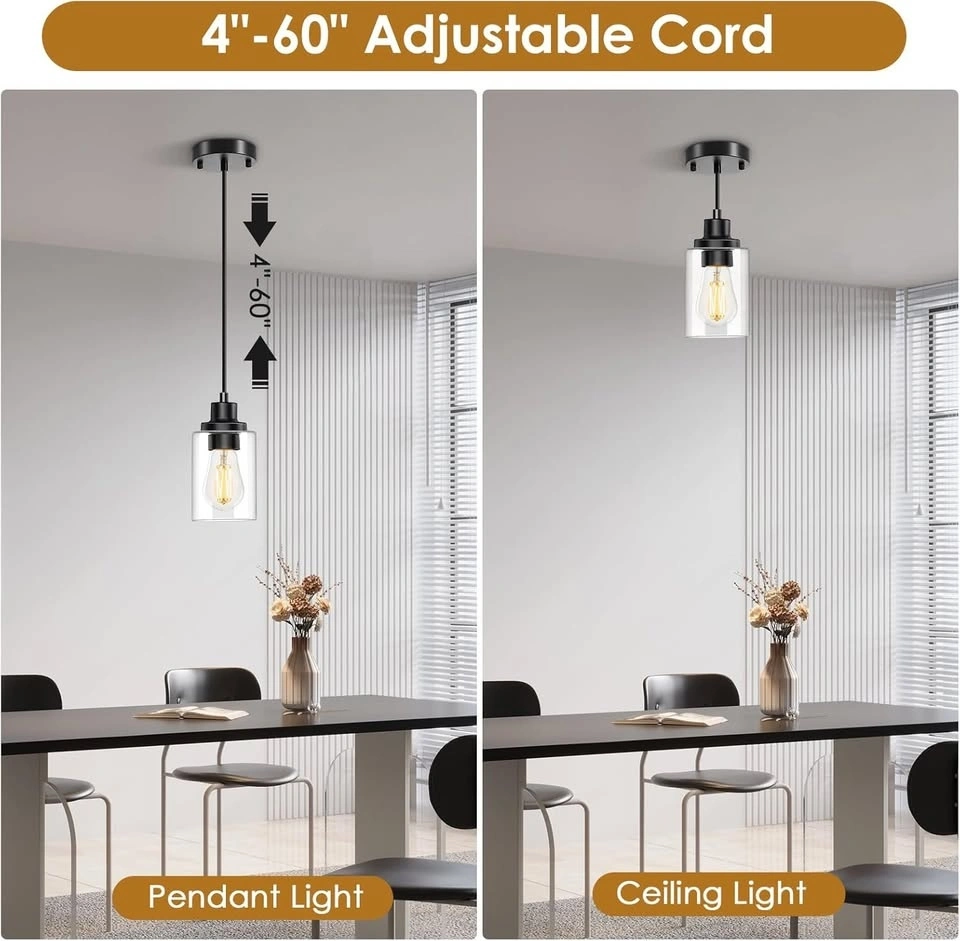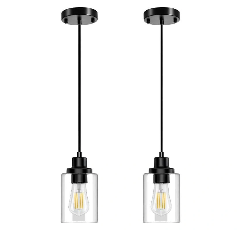 2-Pack Black Pendant Lights – Adjustable Clear Glass Hanging Fix